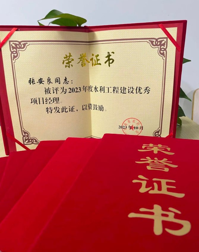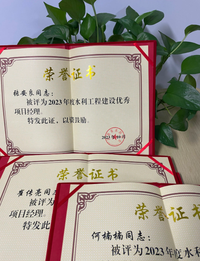 近日,河南省水利學會頒發(fā)了2023年度水利工程建設優(yōu)秀項目經理的榮譽證書,我司多位同志榮獲此榮譽!